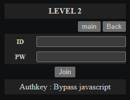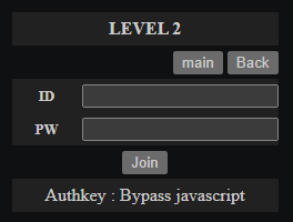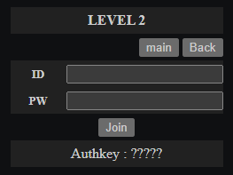 문제에 들어가자마자 보이는 것은 그림 1과 같이 ID와 PW를 입력하는 폼이 존재하고, Join 버튼이 있다.